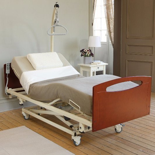Our entry level profiling bed offers many of the same benefits of the more expensive beds in our range. Built with quality, safety and comfort in mind this modern design will enhance any bedroom setting. A flexible four section profiling bed with variable height adjustment and has the option of being fitted with integral wooden or epoxy coated metal folding side rails.